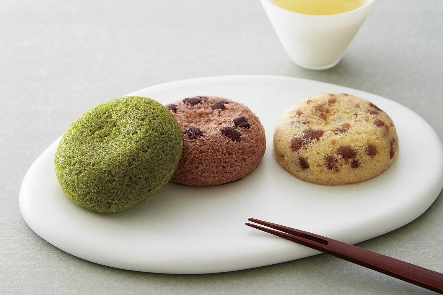 生地に専用餡をたっぷり練り込み、和菓子職人ならではの蒸す技術と素材の持つ力を巧みに活かした和のケーキ。定番の小豆、抹茶の他、果肉やフルーツ餡を練り込んだ季節限定フレーバーなど、1年を通してお楽しみいただける商品です。