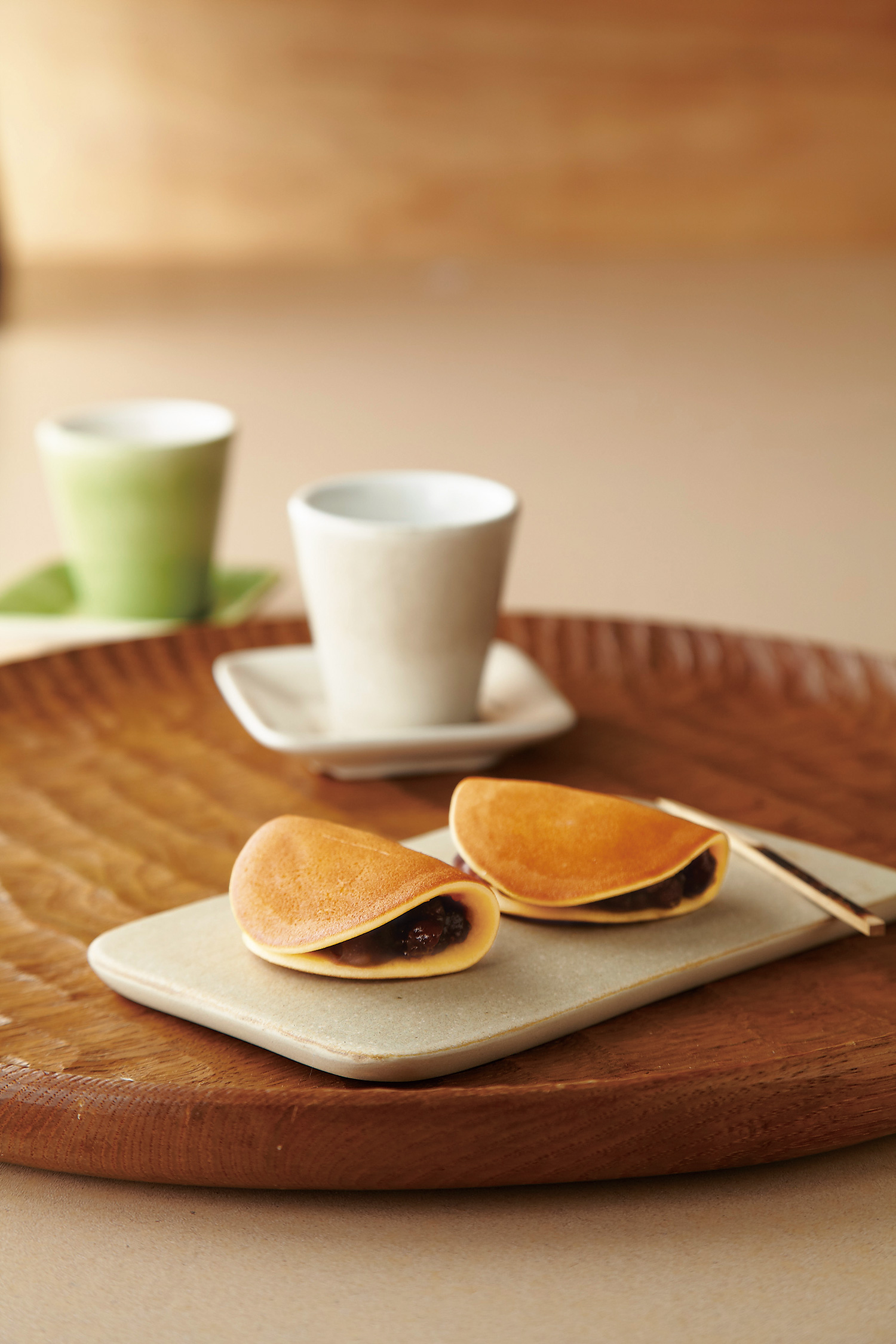 もっちもちのどら焼き生地に粒餡を挟んでいます。生地を一枚ずつ手焼きし、粒餡を挟む作業も気持ちを込めて一つ一つ手巻きしています。帝塚山本店限定の大人気商品。