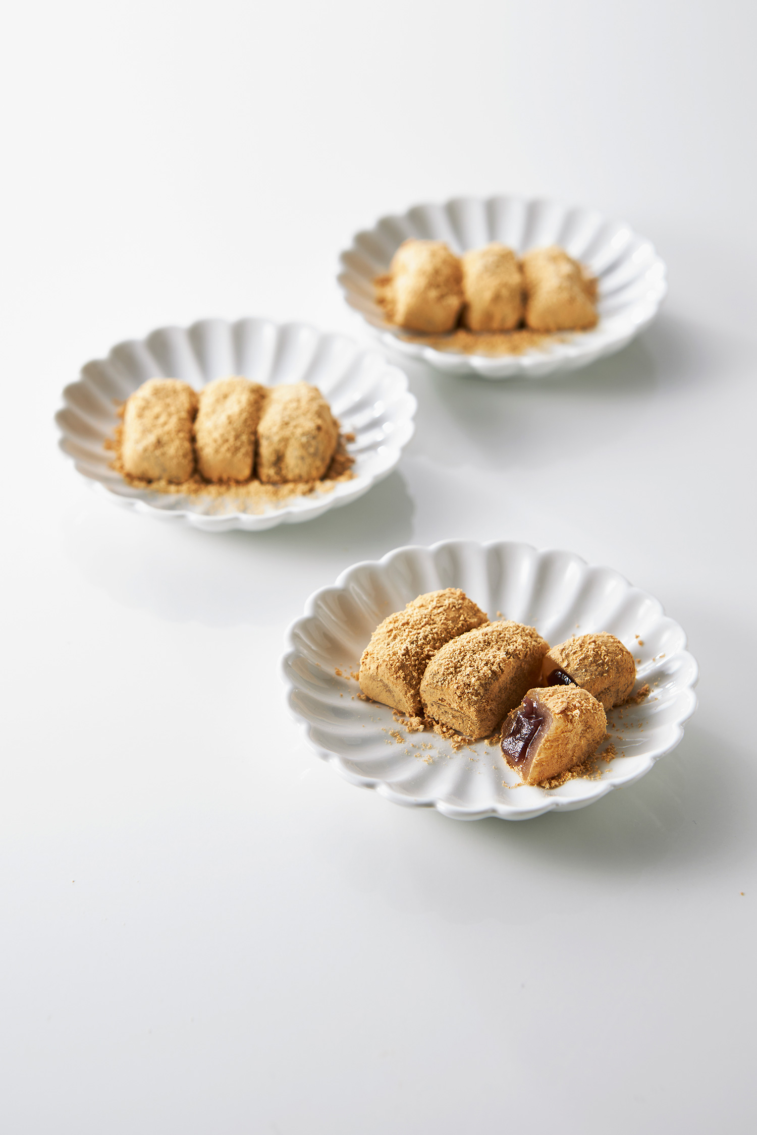 一口サイズのあん入りきな粉餅。高級羽二重粉を使った餅生地と、同じくらいやわらかい餡と香ばしいきな粉のハーモニーはリピートしたくなる美味しさです。