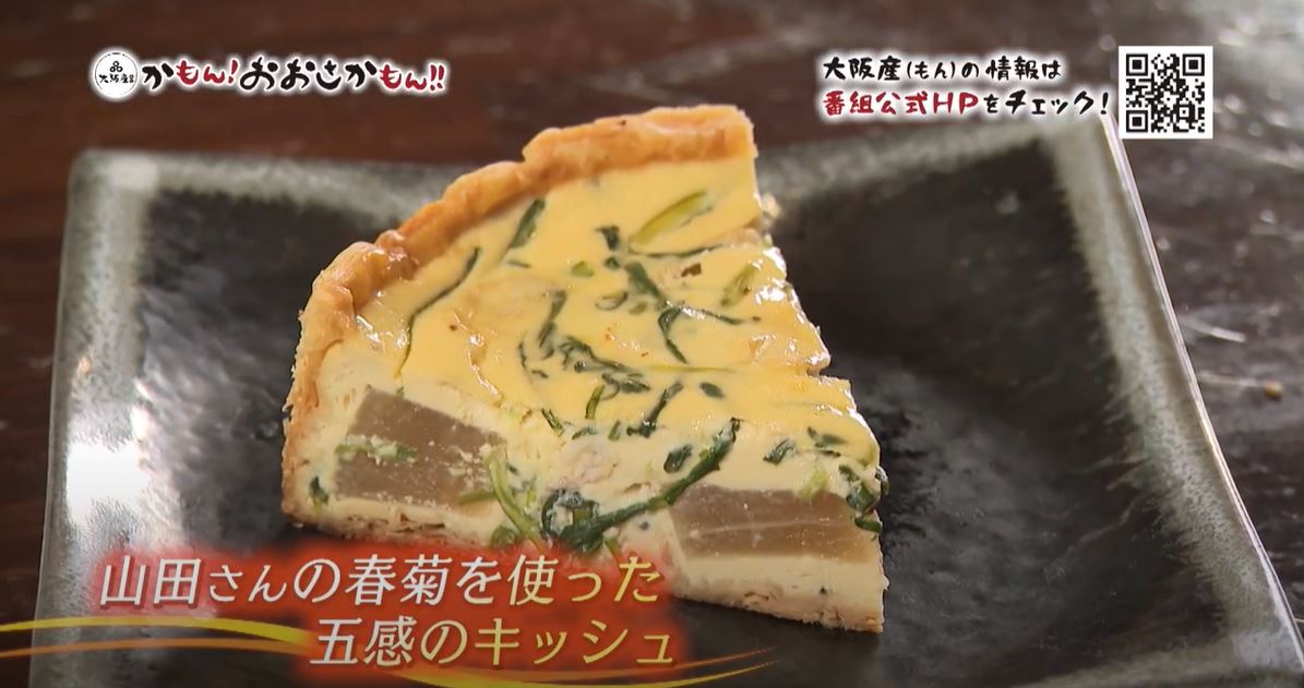 貝塚の山田さんの春菊を使ったキッシュを『五感』北浜本館2階のサロンにていただけます!