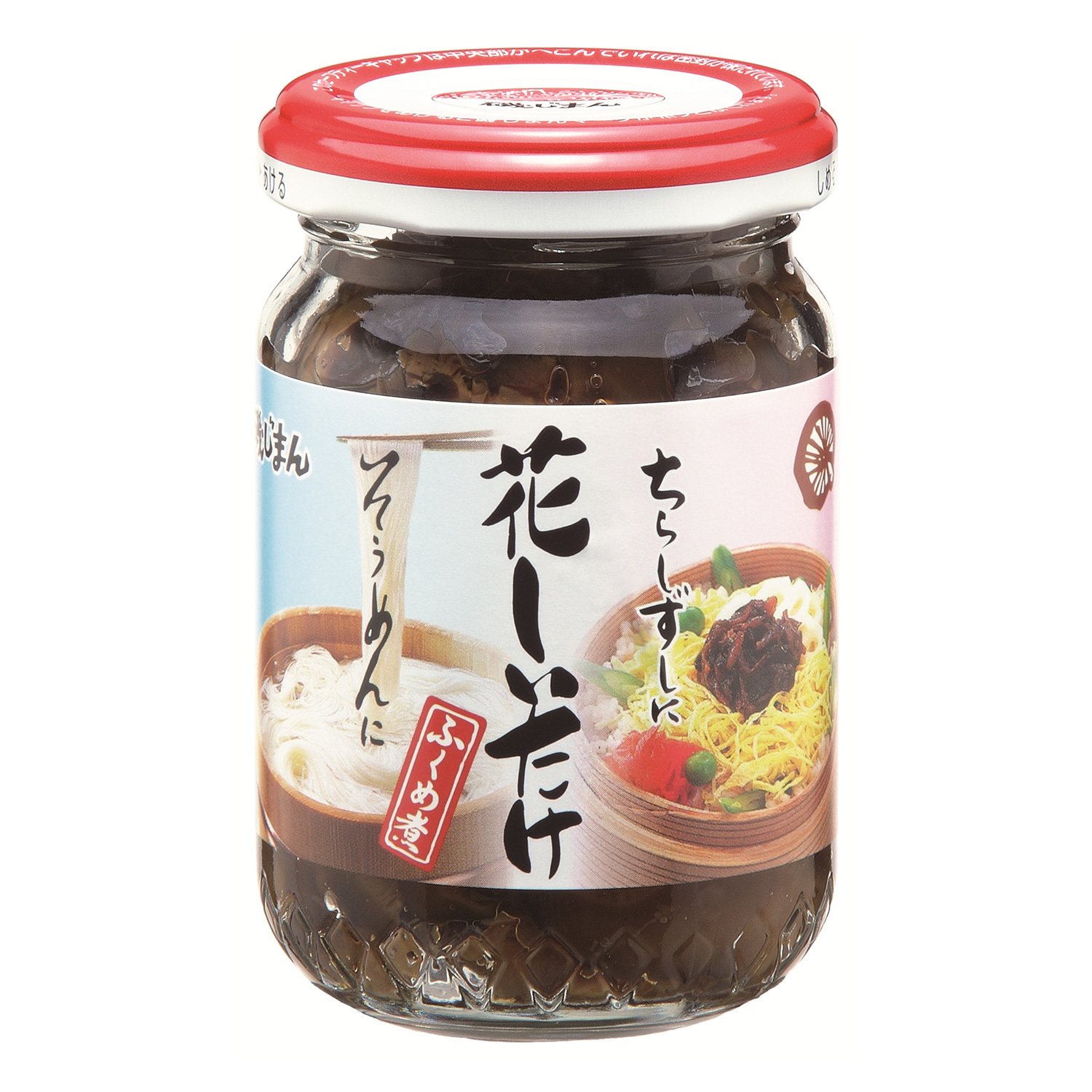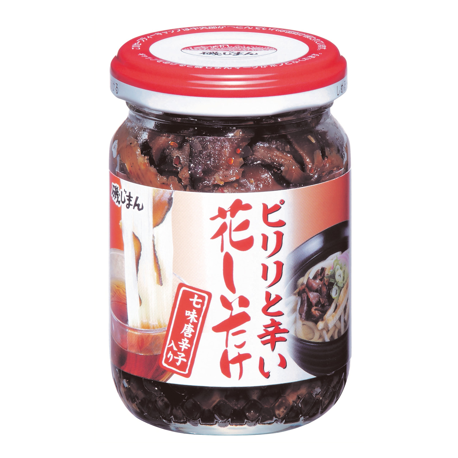 花びらのように薄くスライスした椎茸に、程よい旨味をつけた「花しいたけ」に七味唐辛子を加えて辛味をプラスしました。夏場の素麺にはもちろん冬場の鍋の薬味や温うどんにも。