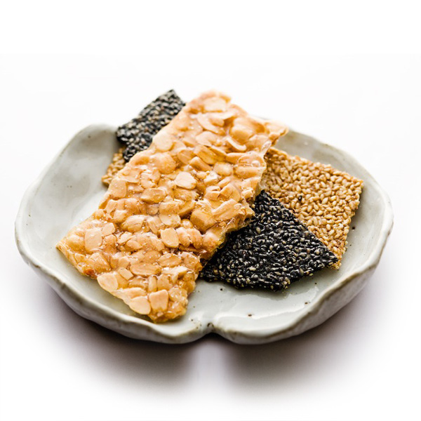 あっさりとした飴生地の中にピーナッツ、ごまをあしらい薄く延ばしました飴菓子です。
