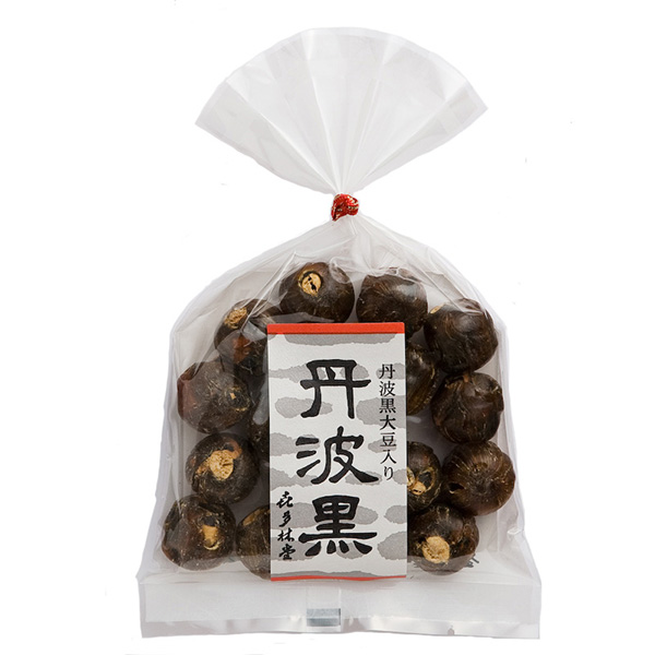 沖縄県産黒砂糖を用いた黒飴に、丹波黒豆をあしらった贅沢な飴菓子です。