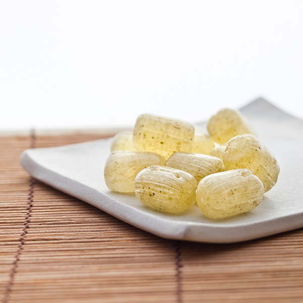 氷砂糖(北海道産てんさい使用)を使用した有平糖に、風味豊かな粉山椒をあしらいました。