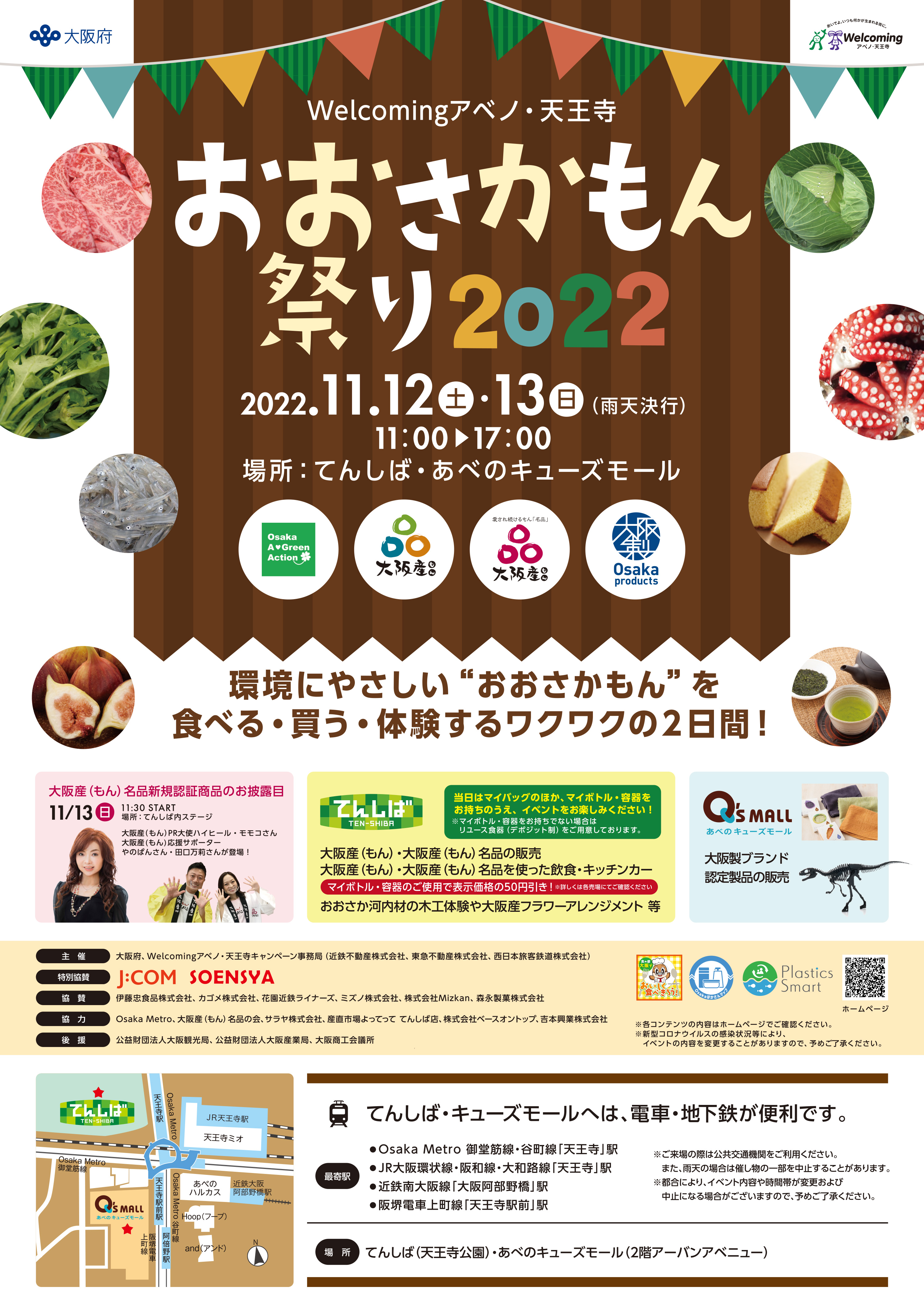 このたび、大阪府とWelcomingアベノ・天王寺キャンペーン事務局は、大阪産(もん)と大阪産(もん)名品、大阪製ブランド製品を手に取り、味わい、体験していただくイベント「Welcomingアベノ・天王寺 おおさかもん祭り2022」を以下のとおり開催します。