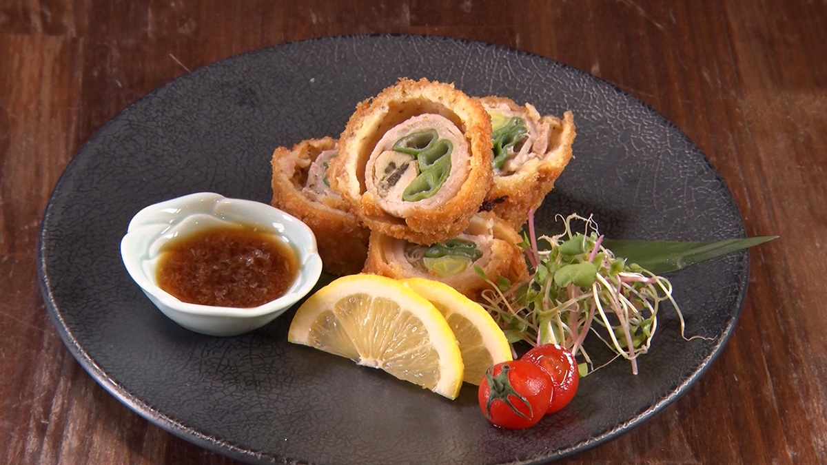 難波葱と波有手の牡蠣の豚巻きフライ