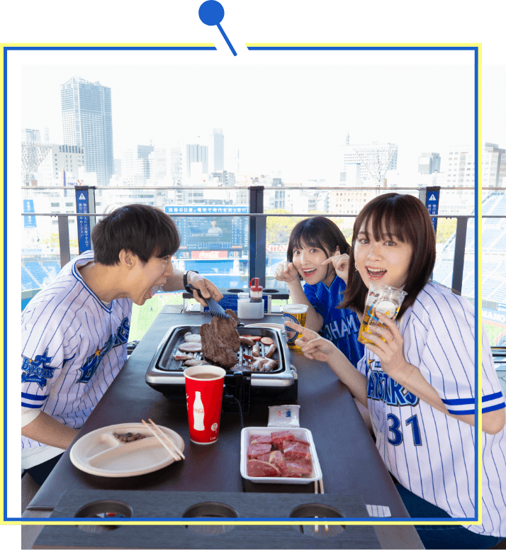 高さ31mからの横浜スタジアムと横浜みなとみらい21エリアの絶景を味わいながら、プロ野球観戦を堪能できるBBQ付BOXシートです。