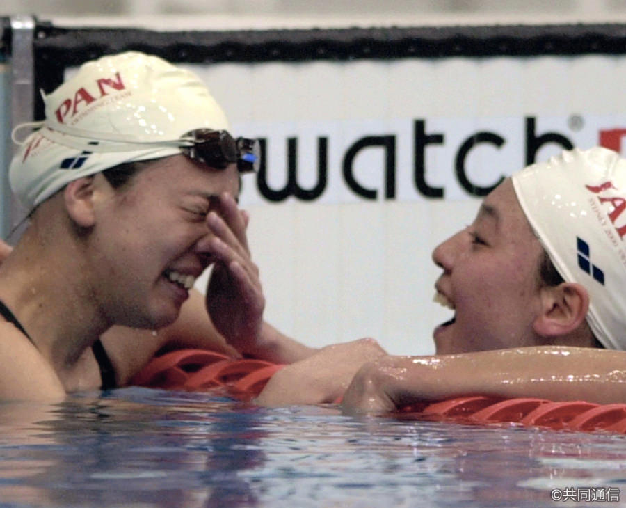 シドニー五輪 女子200m背泳ぎで銅メダルを獲得した涙の中尾を萩原が祝福