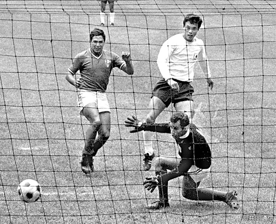 しかし、日本は数少ないチャンスを確実にモノにします。まずは前半18分、FW杉山隆一さんのクロスを胸でトラップした釜本さん、左足を迷うことなく振り抜きました。1対0。