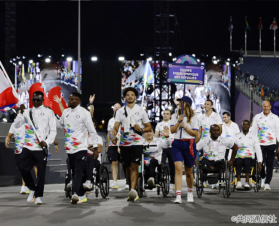 パリ・パラリンピックの開会式は、8月28日(現地時間)、市内中心部のコンコルド広場で行なわれ、167カ国・地域の選手たちとともに難民選手団も行進しました。選手団が姿を現すと、広場はひときわ大きな拍手と歓声に包まれました。