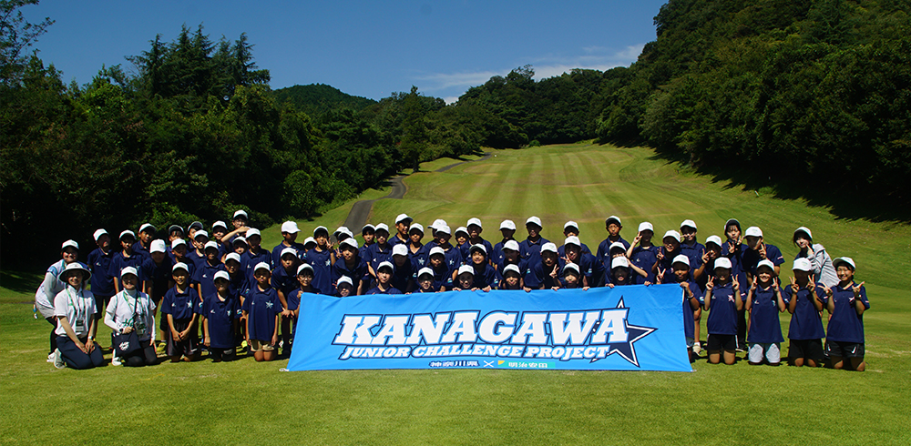 ジュニアスターズの選手たちにスナッグゴルフの体験教室を提供したのは、明治安田生命保険相互会社(明治安田)とJLPGA(日本女子プロゴルフ協会)です。9月3日から6日にかけて東名厚木カントリー倶楽部で行なわれた「JLPGAレジェンズチャンピオンシップ明治安田カップ」の最終日、63人の小学5、6年生(男子29人、女子34人)を招待しました。