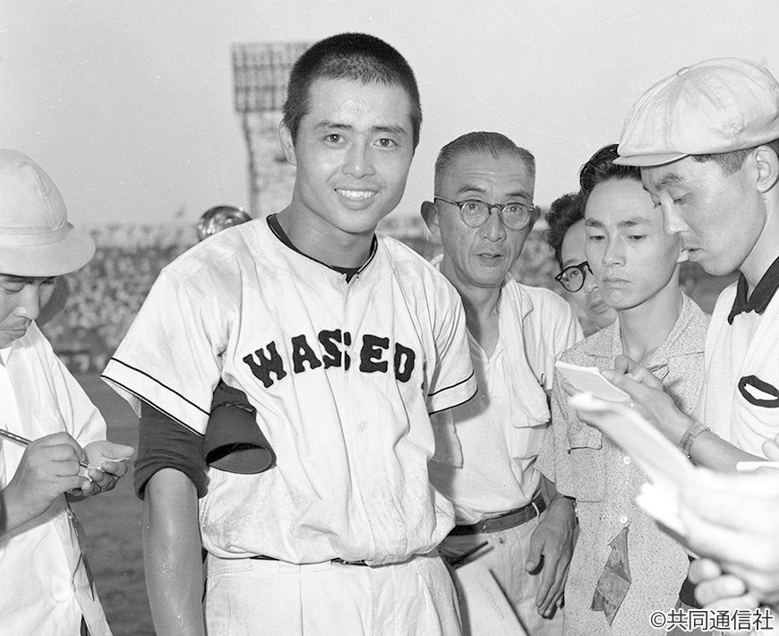 2回戦から登場した早実は寝屋川高(大阪)に1対0で接戦をものにします。王さんは1安打10奪三振の好投でした。