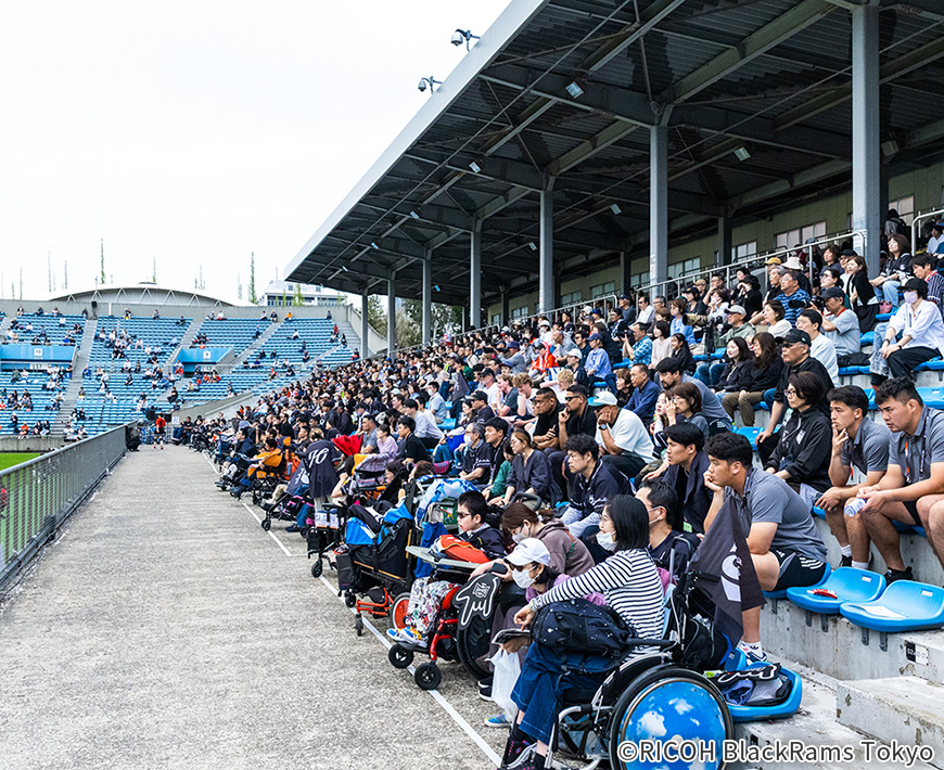 リーグワンのリコーブラックラムズ東京は4月29日現在、ディビジョン1で4位に付けています。上位6チームまでが進めるプレーオフ(PO)には、第17節(5月1~3日)の結果次第で決まります。PO進出となれば2022年にリーグワンがスタートして以降、初めてです。もっとも奮闘しているのは選手だけではありません。さる4月5日、東京・秩父宮ラグビー場で行なわれた第14節のコベルコ神戸スティーラーズ戦において、「誰もが楽しめるラグビー環境」をコンセプトとする『ユニバーサルデー』を開催しました。