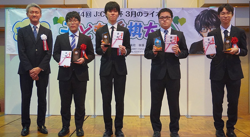 左からJ:COM大橋、山下数毅四段、片山史龍四段、生垣寛人四段、岩村凛太朗四段