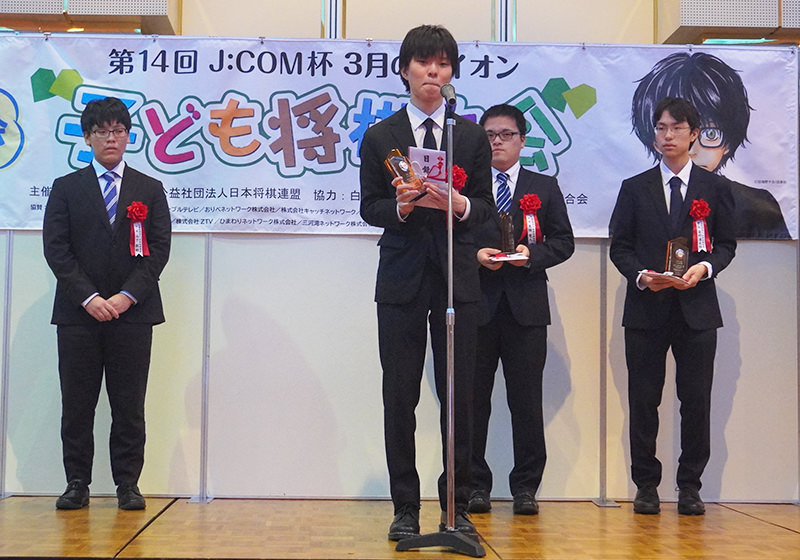J:COM賞については過去受賞された先輩方から聞いていました。人前に出ることが多くなったので、スーツ仕立券がいただけることを嬉しく感じています。駒をいただけることも嬉しいです。(※J:COM杯全国大会出場者に贈られるもの)
